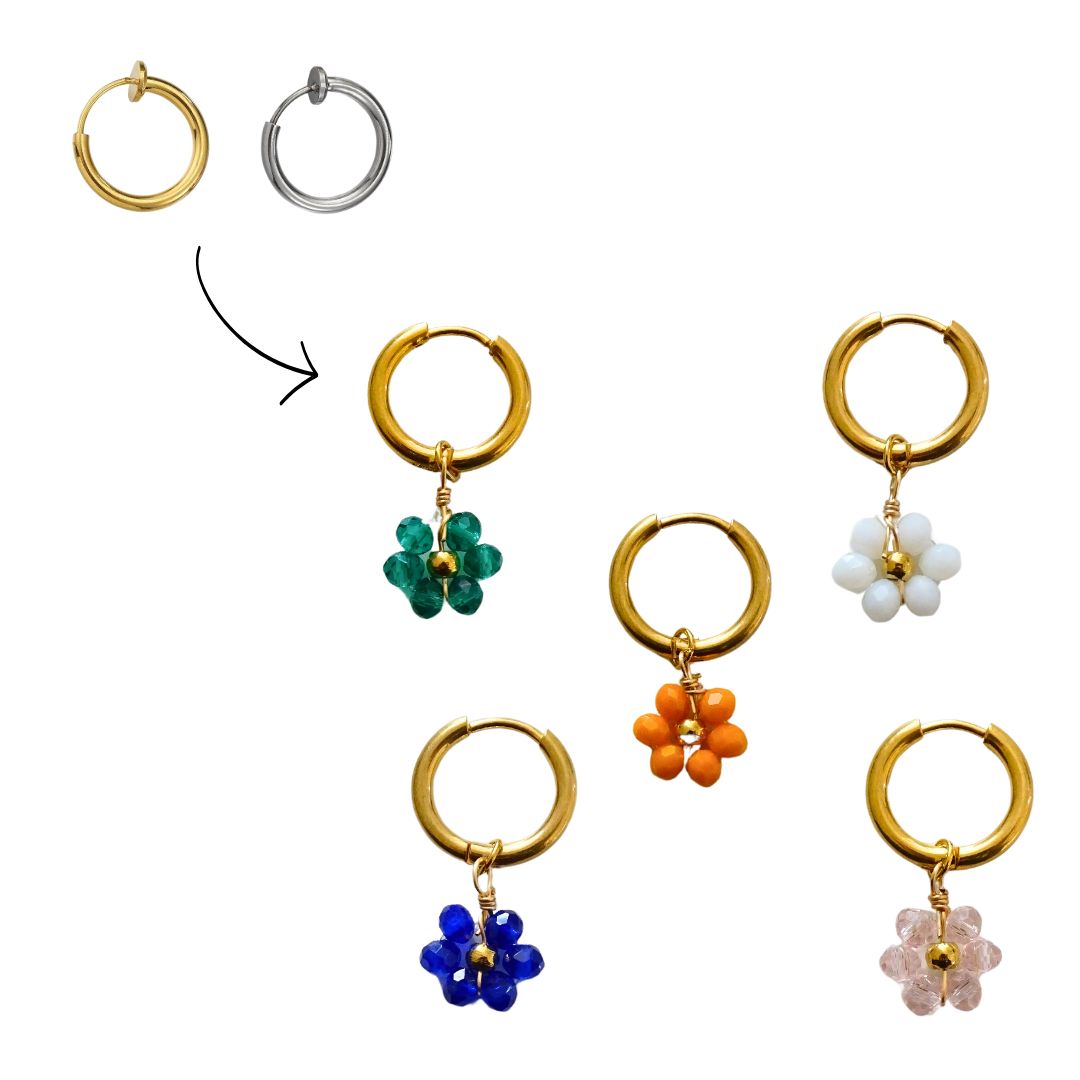 Clip oorbellen bloem kralen